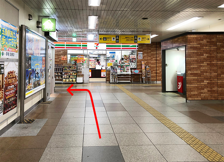 改札を抜け、突き当たりを左折して東口にお進みください。